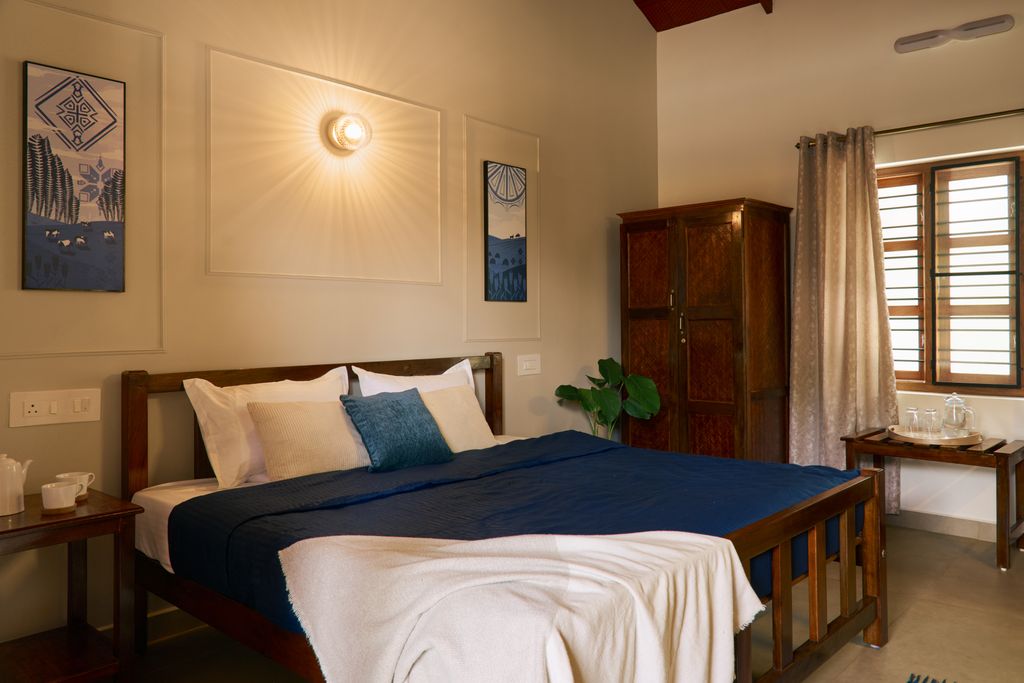 Set within a quiet coffee estate, Terra Haze is a four-room retreat built entirely with terracotta blocks, giving the space a warm, earthy character. Designed in an L-shaped layout, the property is known for its gentle haze, soft morning light wrapping in two rooms, while the others glow subtly in the evening.