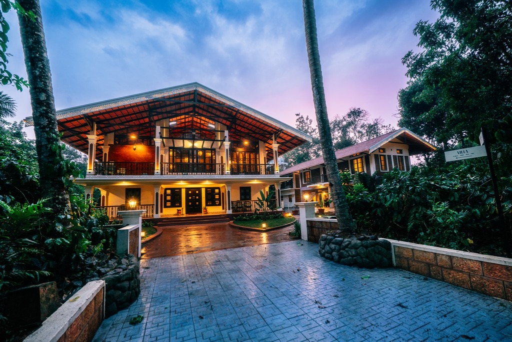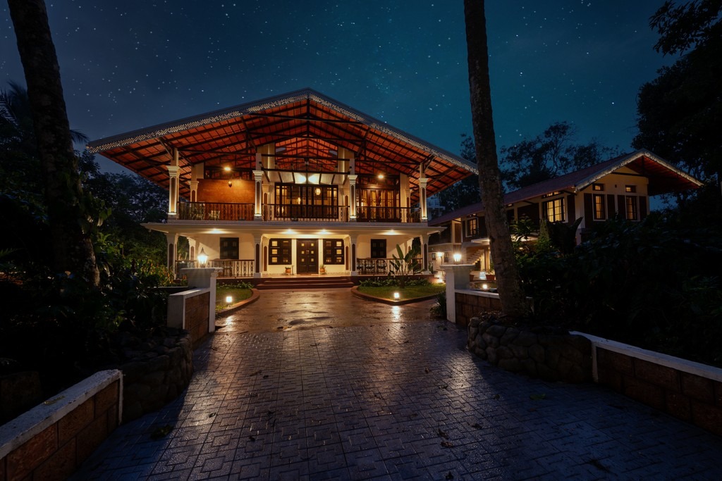 Set in the heart of Coorg amidst a serene coffee plantation, Kumberi Manor is a restored heritage retreat and a refined Coorg stay that blends old-world charm with modern comfort. The estate features a spacious main home with four private rooms and an adjoining outhouse with three additional rooms, making it a welcoming escape for couples, families, and larger groups.
